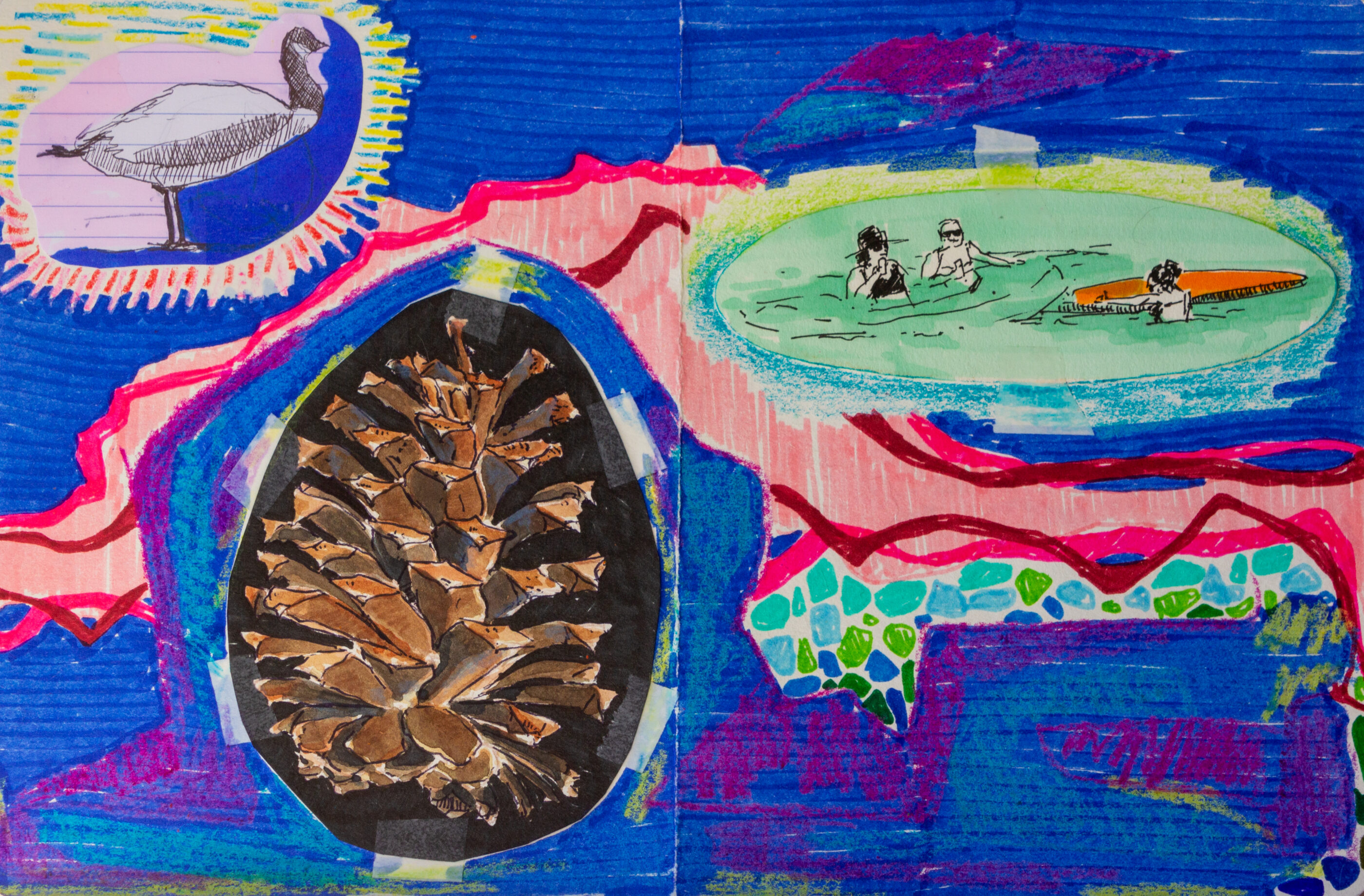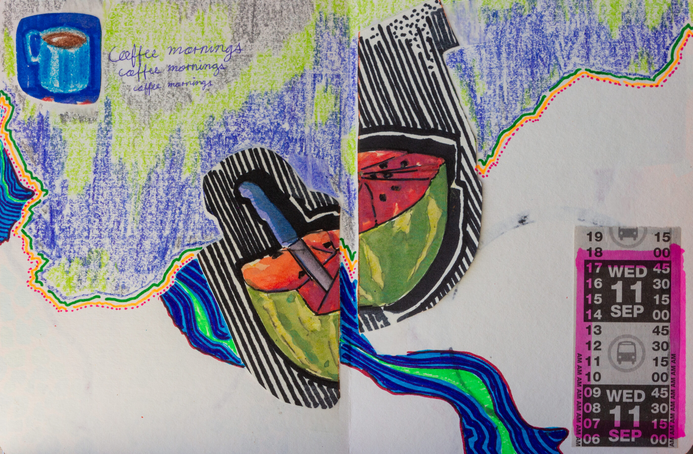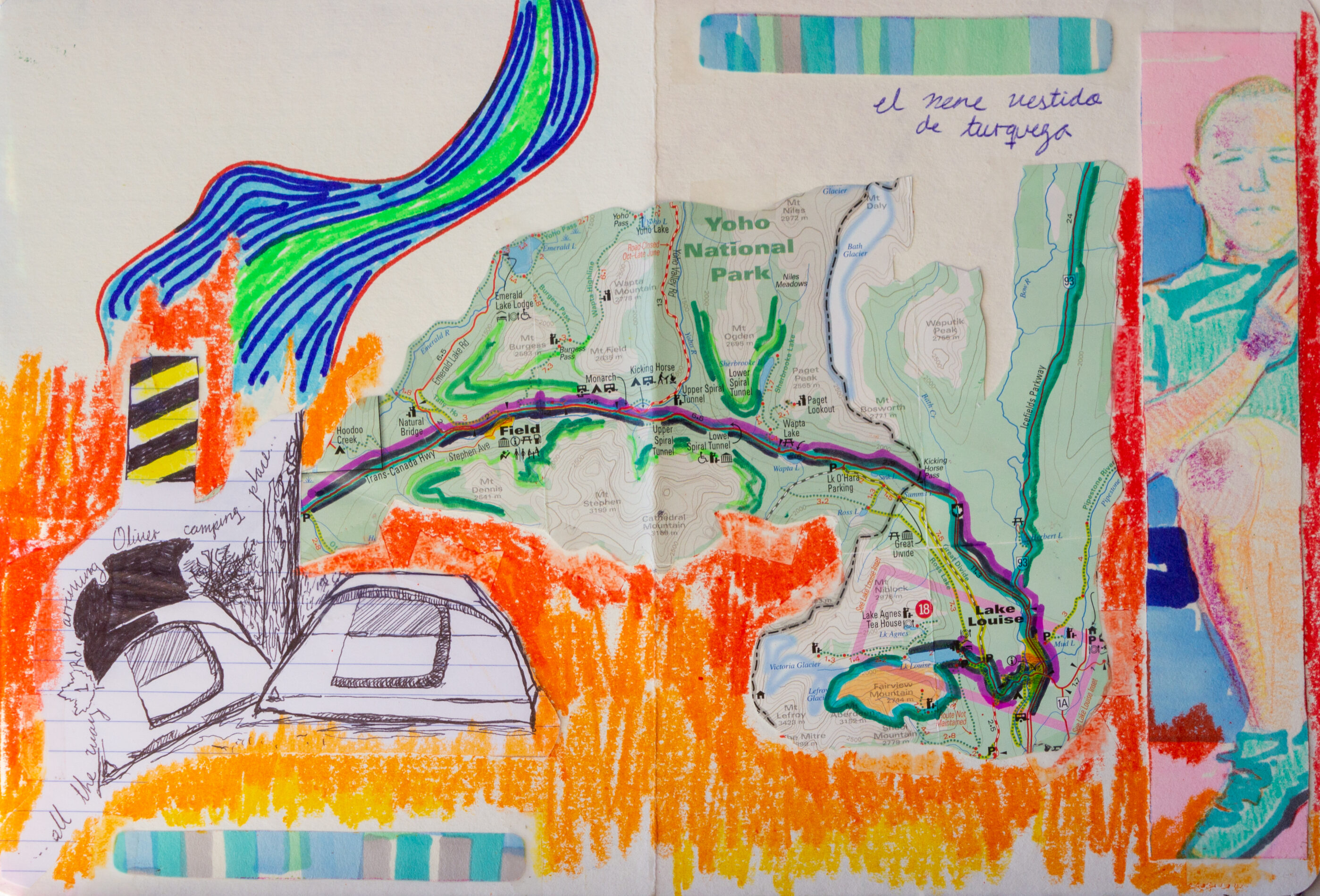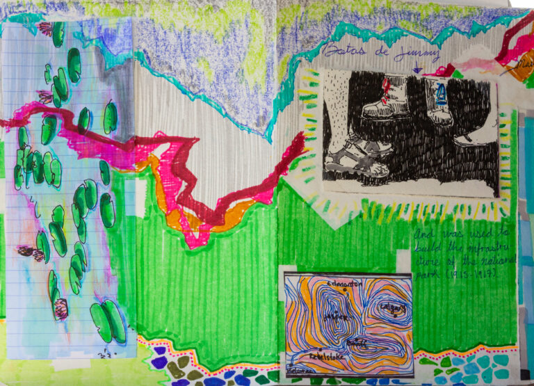 During my stay in the Okanagan Valley, I crafted a series of postcards that captured the essence of the cherry harvest season. These postcards, enriched with elements such as bus tickets, portraits, quotes from friends and locals, and the artistic mapping of my journey, served as my expression to weave together time, space, and my narratives, immortalized in a sort of artistic travel journal. This artistic initiative, supported by visual storytelling, gave rise to a unique representation of my time in the region.